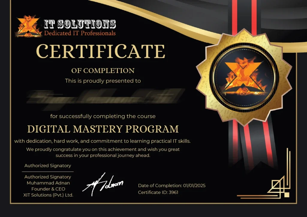 At XIT Solutions Institute, we believe that learning should lead to real achievement and recognition. That is why every successful learner is awarded a Certificate of Completion after finishing the required course or program.