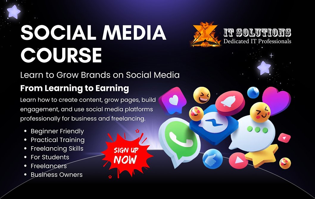 Students will also learn how to use social media for business growth, customer connection, lead generation, and personal branding. The course is explained in a simple and structured way so learners can confidently manage social media for their own business, institute, brand, or freelance clients.